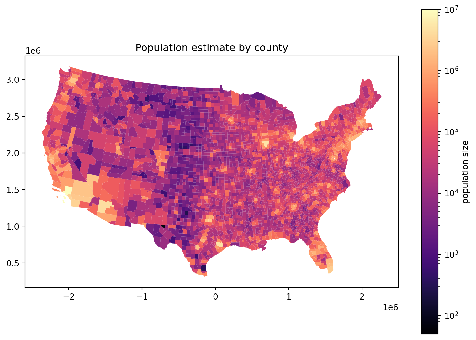 cdf .assign(density=lambda df: df['POPESTIMATE']*1e6/df['geometry'].area)