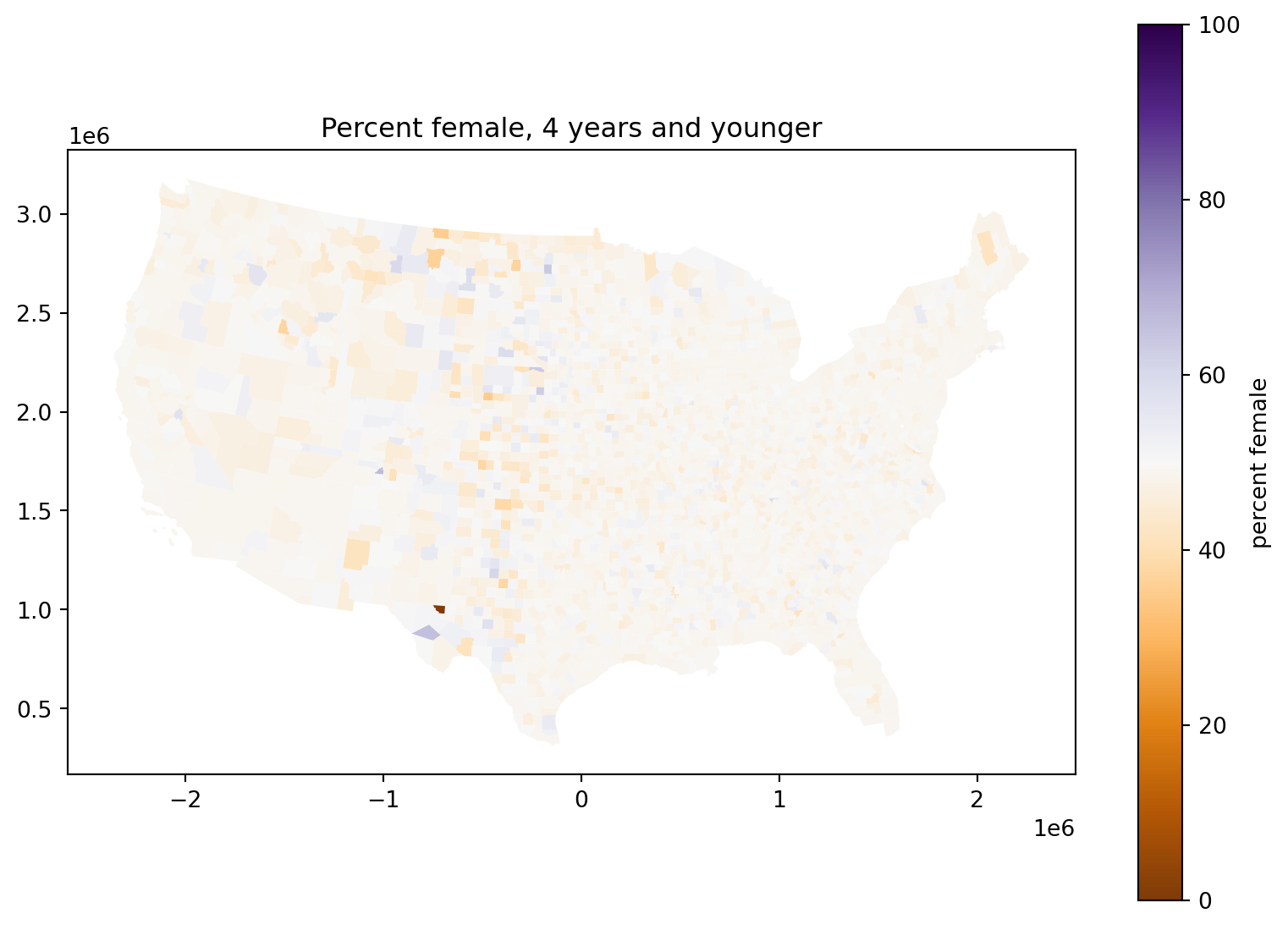 cdf .assign(pfem=100*cdf['AGE04_FEM']/cdf['AGE04_TOT'])